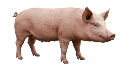 A detailed 3D rendering of a black pig with numerous small white spots across its body.