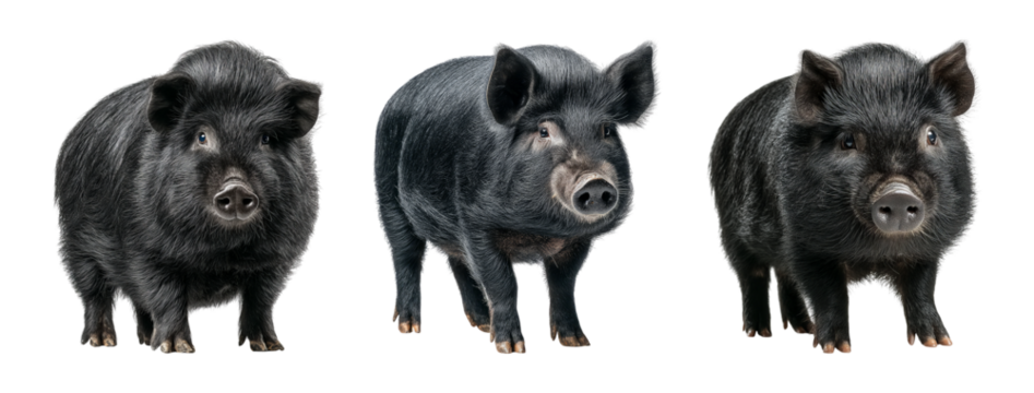 Close-up of a charming young pink piglet with a distinctive black spot and prominent ears, isolated cleanly on a transparent background. background removed