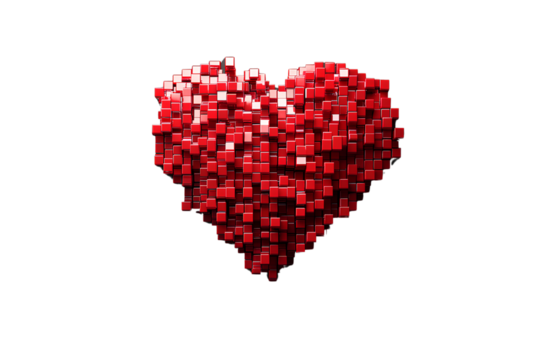 A unique heart-shaped qr code representing digital connection, love, and modern communication isolated on transparent background