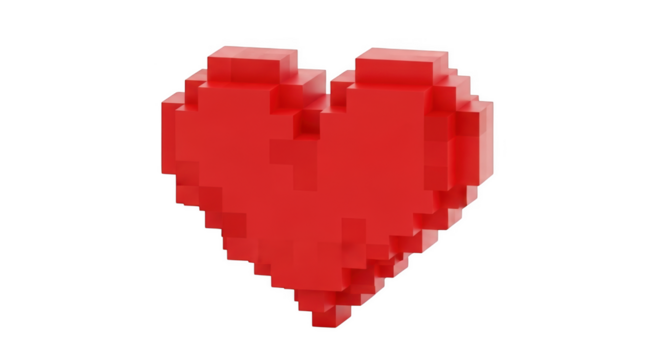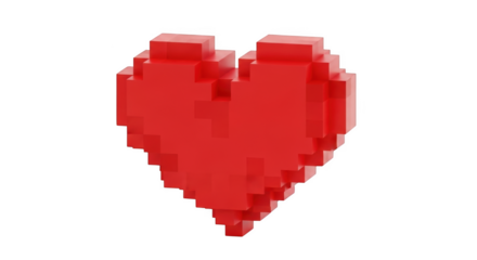 Floating pixel art heart icon on transparent background