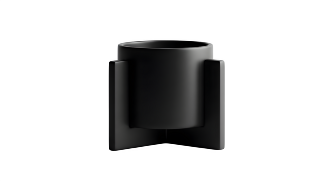Modern matte black planter isolated on transparent background for indoor plants