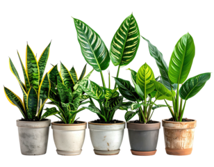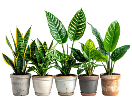 Four potted plants isolated on transparent background