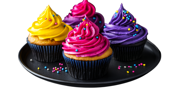 Simple black ceramic plate isolated on transparent background. Shiny black plate isolated on white background.