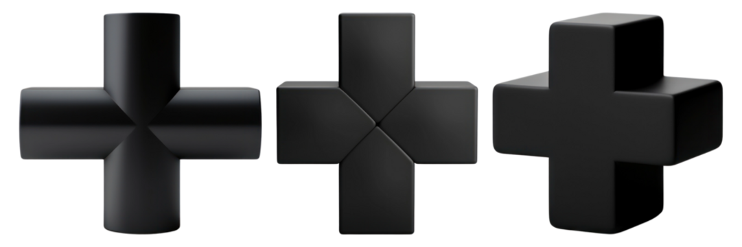 3d black plus elements png on transparent background