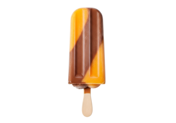 Delicious orange and white striped popsicle on black background, Isolated On Transparent Background, Cut Out