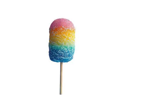 Rainbow ice pop on wooden stick, isolated on black background