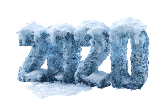Frozen ice sculpture of the year 2020 on black background