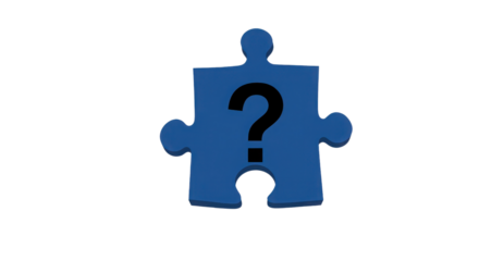 Blue jigsaw puzzle piece with black question mark isolated on white