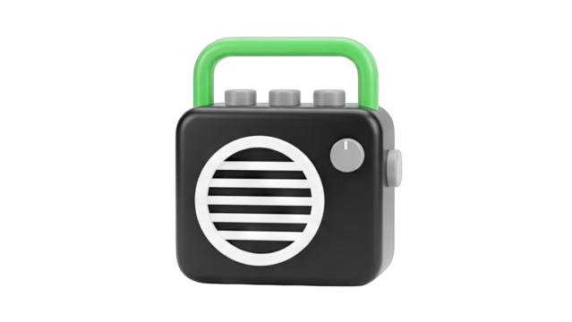 Green vintage radio illustration on transparent background