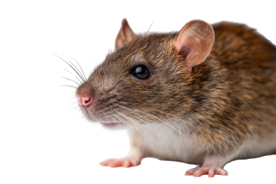 Rodent close-up; brown fur, whiskers visible, isolated on black
