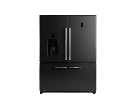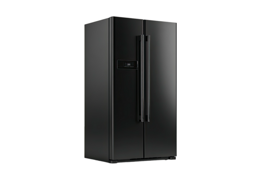 Black Modern Refrigerator Isolated on Transparent Background