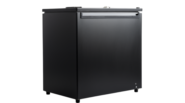 Isolated Refrigerator Stands Vertically in Studio Lighting with Retro Design Accents