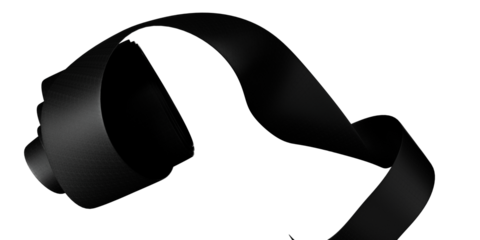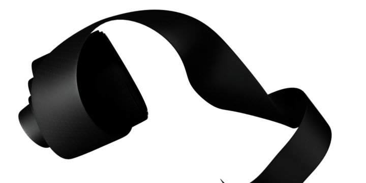 A shiny, curved black ribbon forms a smooth, flowing wave shape.