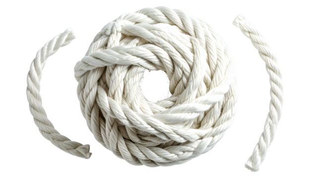 Close-up of coiled, thick, natural-fiber rope against a black background