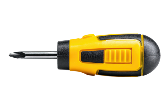 A yellow and black screwdriver on transparent background for commercial use in hardware and DIY projects