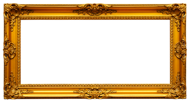 An opulent black and gold ornate picture frame features intricate baroque detailing and luxurious craftsmanship.