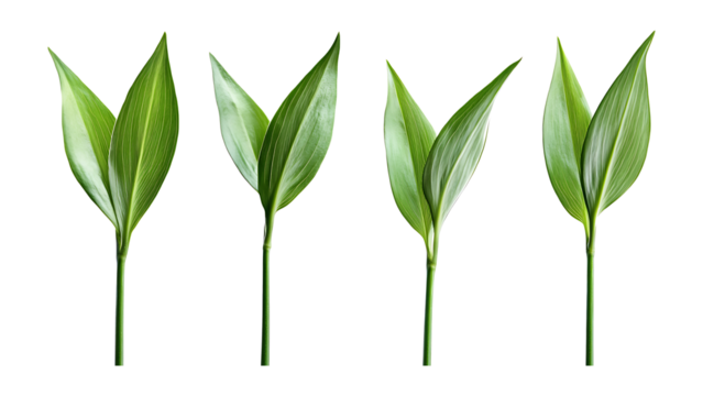 Four green leaf on a transparent background,Four Lily of the valley Leafs Isolated,Four Tropical Plant Leaves,leaf transparent png,Decoration work, green plants,Four green leafed plants, Ai