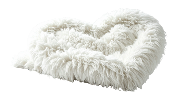 Fluffy, white heart-shaped cushion, soft & inviting on black