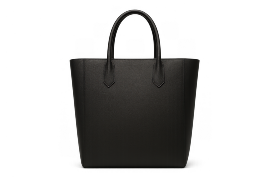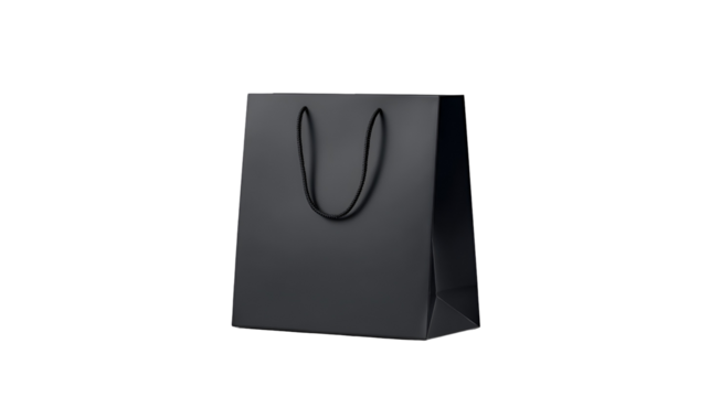 Minimalist black shopping bag icon with striped handle on transparent background, PNG