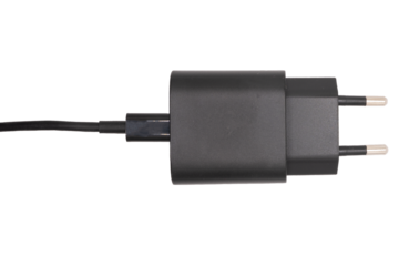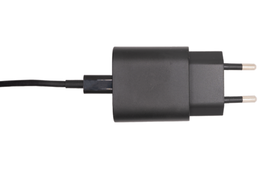 Charger for smartphones. Phone charger. Black phone charger without background.