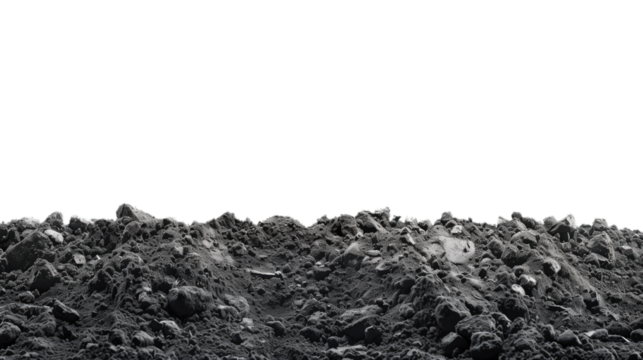 dark black rocky soil land on transparent background
