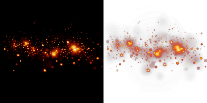 PNG abstract explosion with glowing light rays and shimmering flare combined with sparkling confetti and gold dust on isolated transparent vector background for christmas and new year party