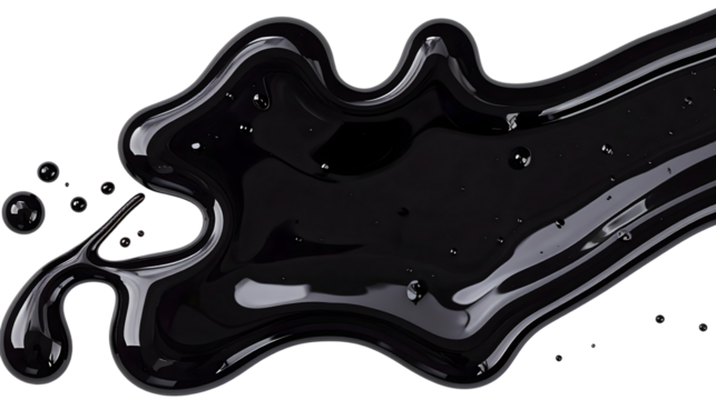 Black oil stain with glossy texture, isolated on a white background