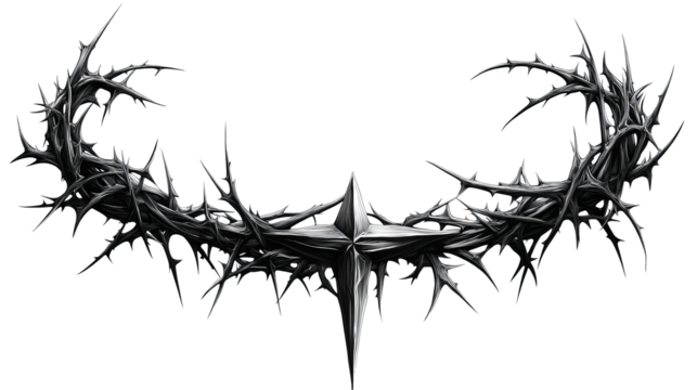Sharp thorny star shape on black, cut out transparent