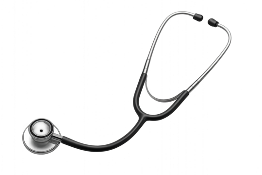 Professional black stethoscope, essential medical tool isolated on transparent background