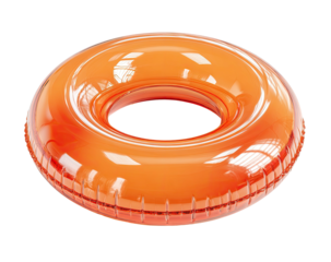 Translucent orange inflatable tube, light reflecting, floating on black background