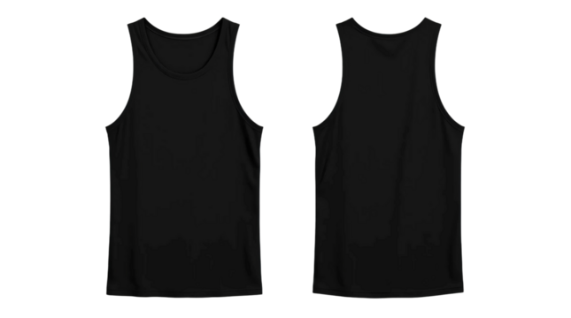Black sport tank top mockup, front and back view for design. Isolated on transparent background, png