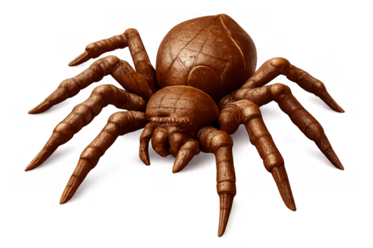 Chocolate spider dessert for halloween party and scary sweet treats on transparent background