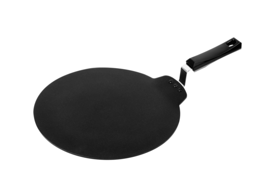 Top-view of nonstick flat tawa pan for roti and dosa cooking isolated on a transparent background