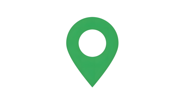 Green map pin icon on black background