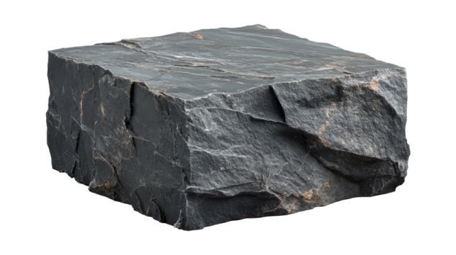 Cube slate tile with rough surface. Isolated on transparent background