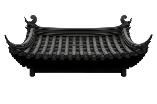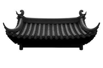 Black chinese style tiled roof isolated on transparent  background.