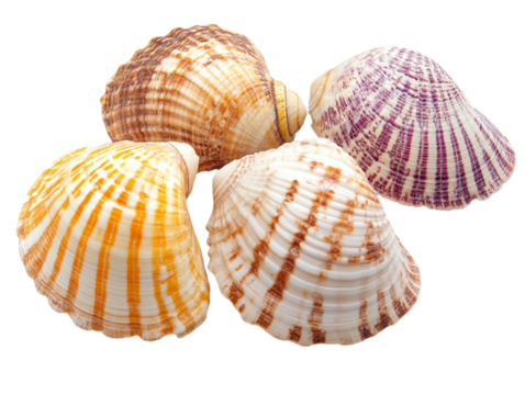 Brown seashell with radial ridges on a black background
