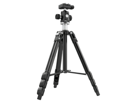 Capture fleeting moments with stability A sleek portable black tripod providing unwavering on transparent background