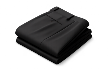 Folded black trousers on transparent background for online selling.