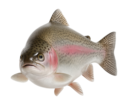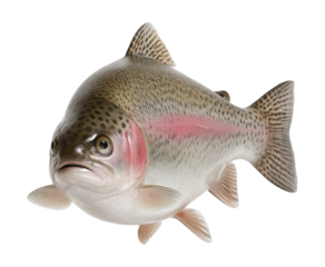 Rainbow trout isolated on transparent background PNG, freshwater fish with colorful iridescent stripe and black spots for fishing and wildlife themes