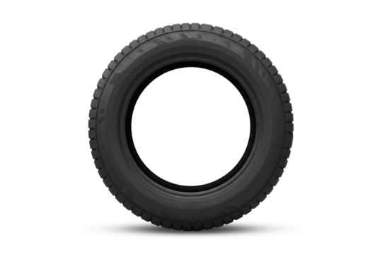 Car tires with a great profile in the car repair shop. Set of summer or winter tyres in front of white fond. On transparent PNG background.