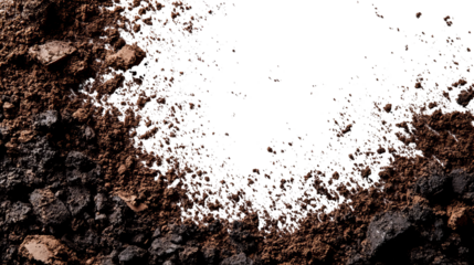 Close-up view of dark soil and gravel with a black void