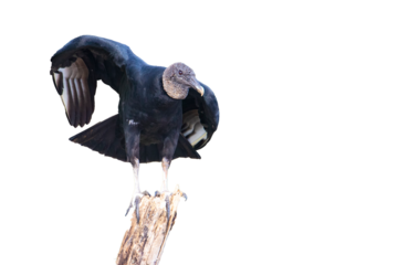 wild black vulture isolated on transparent background; wild bird of prey of america; costa rica wildlife, large bird isolated