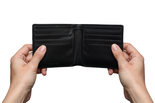 Open Black Leather Wallet Held in Hands
