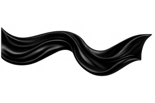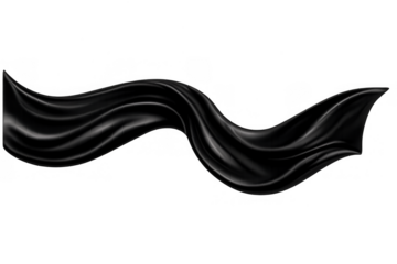 Black flowing silk fabric creating a wavy, elegant design element with smooth luxurious texture on transparent background