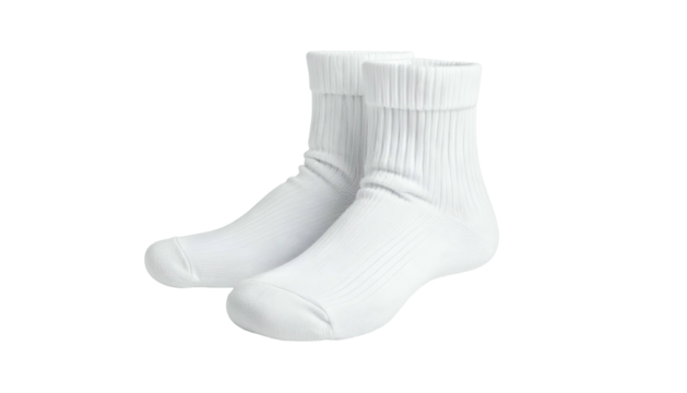 Pair of plain white cotton socks on transparent background, PNG