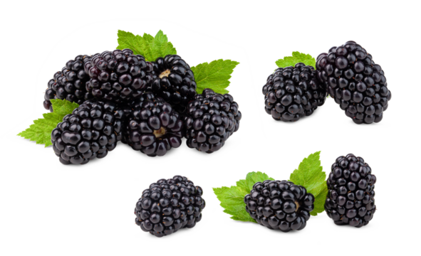 Juicy blackberries isolated on transparent background