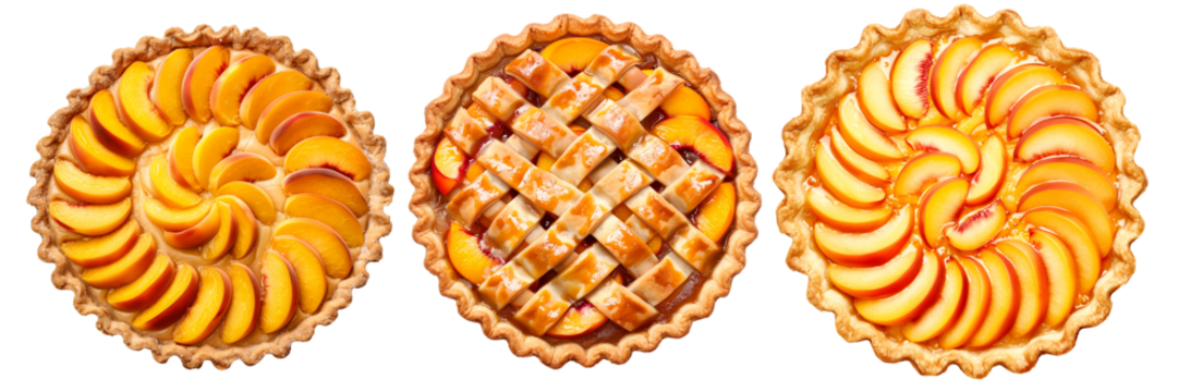 Freshly baked peach pie with a stunning lattice crust isolated on white transparent background
