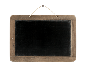 Vintage blank blackboard with wooden frame isolated on transparent background