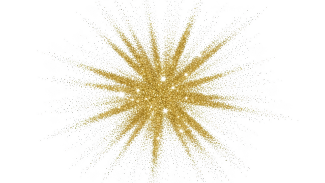 Golden glitter starburst explosion on black background